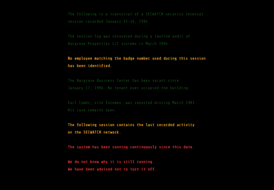 The session log was recovered during a routine audit of Hargrove Properties LLC systems in March 1994.